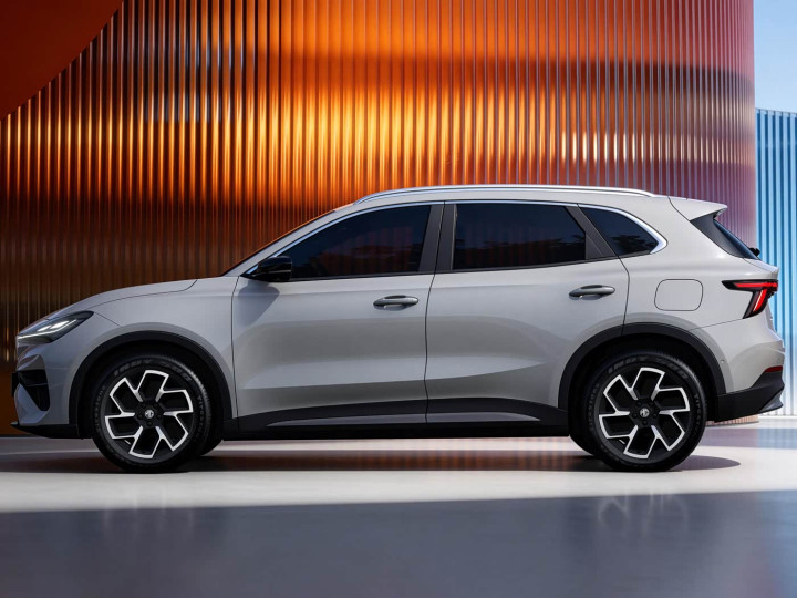 再来看车身侧面部分,MG 4X经受了传统SUV的安妥打算,莫得过度张扬的线条,却在细节处尽显质感。多边形车窗综合足够,下千里式车顶搭配后翼子板隆起的腰线,营造出特有的光影成果。前侧凌厉的线条与车门下方的内凹打算,勾画出车身的立体感,让整车看起来足够而富饶力量。值得一提的是,新车并未经受当卑劣行的荫藏式门把手,而是聘请了传统机械门把手,在低温、冰冻、沙尘等环境下,踏实性与耐用性更有保险,更贴合家庭用户的实用需求。外后视镜、侧裙、轮眉的黑化措置,谐和侧窗镀铬饰条,均衡了清爽感与细致感,车顶行李架与全景天幕的配备,既升迁了装载智商,又优化了车内通透感。