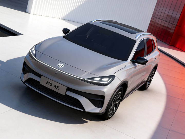 咱们领先来看新车的外不雅打算方面,MG 4X的车头打算延续了家眷年青化谈话,同期融入了SUV车型的硬朗气质。最引东谈主注指标是星环式络续LED灯带,它与两侧三角体式的主灯组无缝衔尾,搭配可发光的品牌记号,点亮后科技感拉满,夜间辨识度极高。前脸中央的横向玄色饰板,不仅拉伸了视觉宽度,还让车头眉目感更为分明。下方梯形格栅搭配镀铬前铲,既优化了空气能源学性能,又强化了清爽氛围,两侧足够的玄色清爽套件,进一步突显了整车的活力。禁闭式格栅打算贴合纯电车型身份,里面缜密的线条守密,展现出细节处的精心。