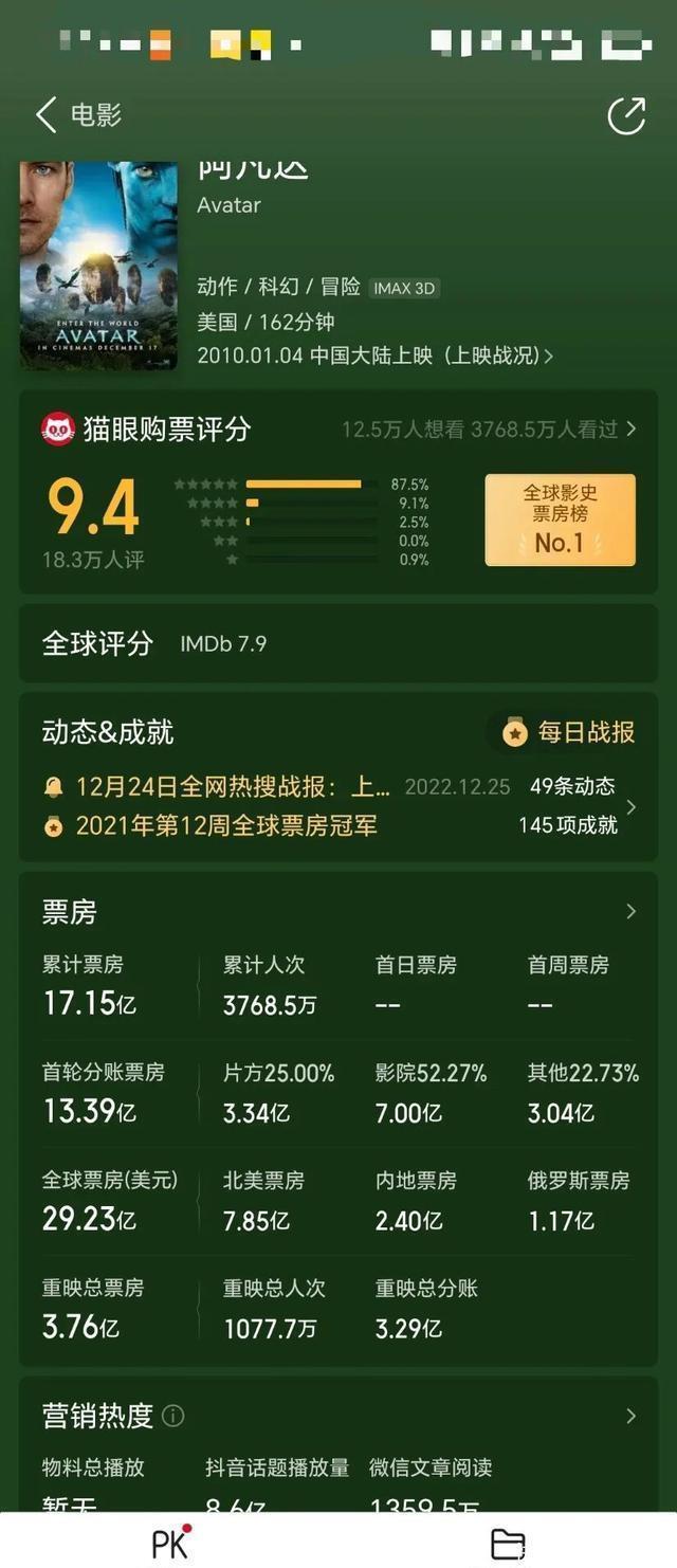 ▲ 宇宙影史票房榜/着手:猫眼 《阿凡达3》预售开启后,IMAX点映场的票价一度被炒到198元,有网友辱弄“看的不是电影,是情感价值”,股民当然也趁势把博纳当成了“潜在受益者”。
