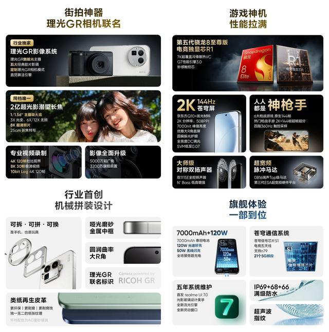 如若对影像和峰值性能有更高的需求,真我GT8了解一下,12GB+256GB版2448元,16GB+512GB版平直价3077元。该机搭载骁龙8Elite旗舰芯片,秉承2K+144Hz京东方天穹直屏,机身内置7000毫安时电板,因循100W有线充电。电竞方面有独显芯片R1,搭配超线性立体双扬和X轴线性马达,不错叮嘱多样主流大型游戏。后置5000万OIS潜望式长焦三摄组合,亮点是理光GR影像系统和五大经典胶片影调,是同价位机型中最优的选定之一。